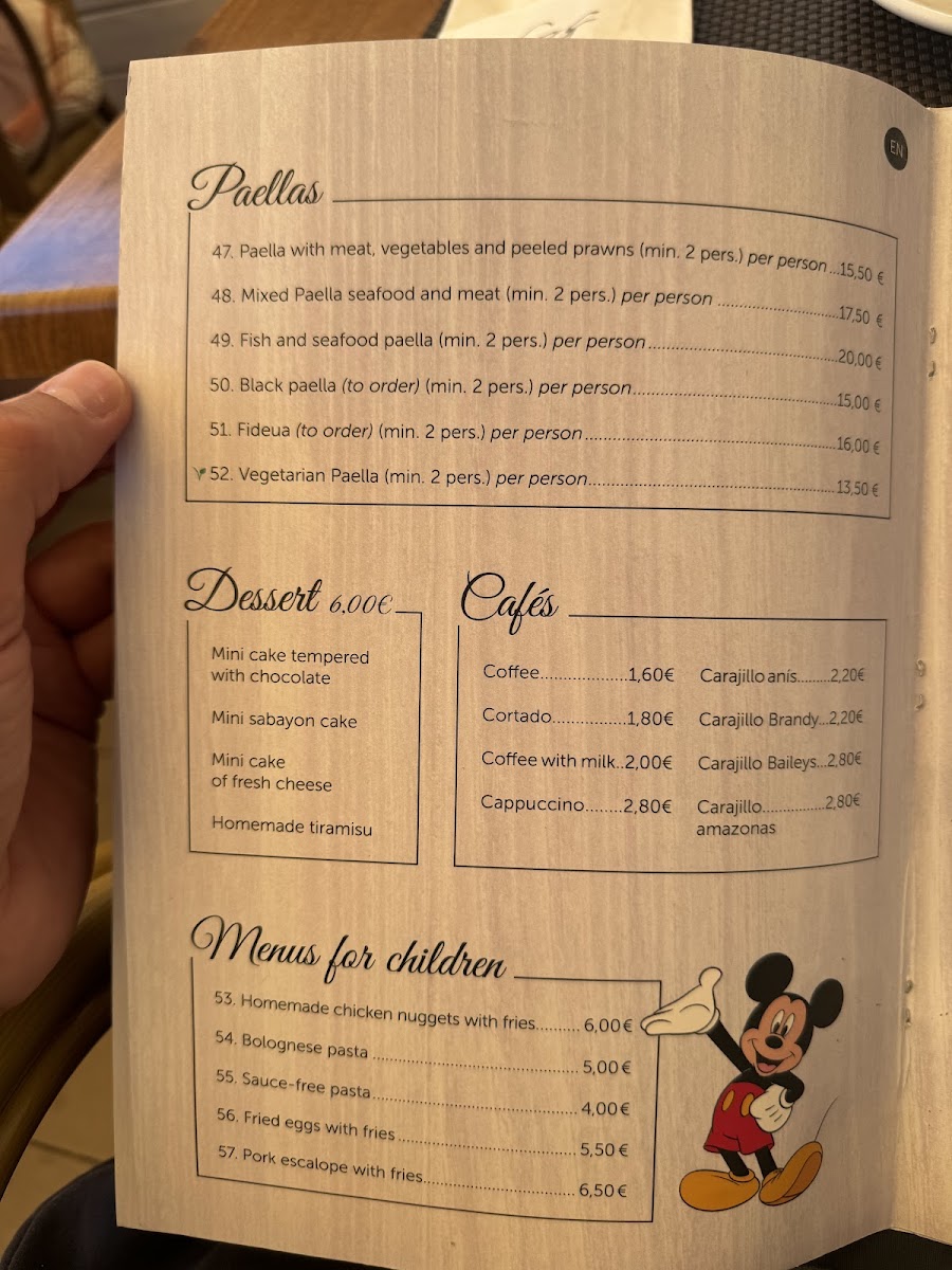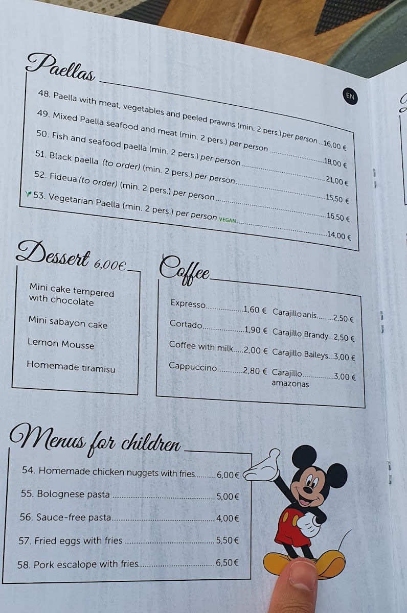 The menu highlights include a standout sea bass, perfectly cooked with a crisp skin, and served alongside grilled vegetables and potatoes. Diners rave about the seafood and fish paella, brimming with fresh octopus, clams, and prawns—a dish that truly lives up to its renowned reputation. For those seeking a delightful beverage, the well-balanced sangria offers a refreshing sip, while local beers complement the meal splendidly.